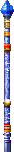 A rod of blue metal and wood capped with a blue headstone.